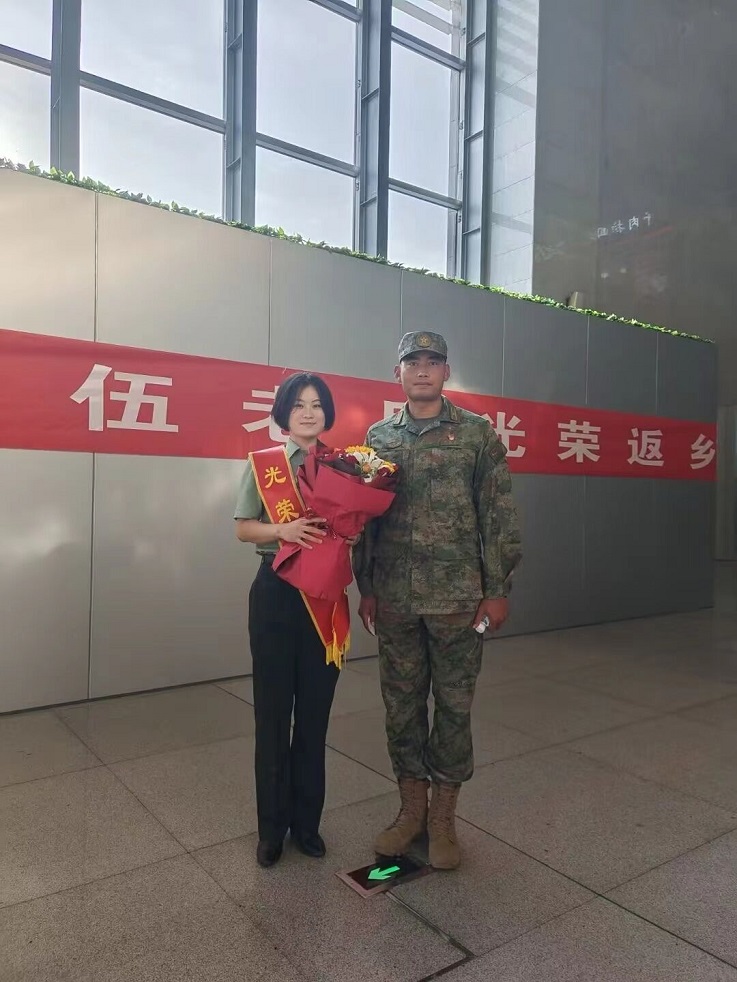“入伍的经历教会了我要自律自强,有理想,就要去实现,矢志奋斗,不忘初心。新时代青年肩负中华民族复兴的伟大重任,只有敢于拼搏,发扬战斗精神,才能有所成就。学弟学妹们,你们要相信,自律使人健康快乐,奋斗的精神任何时候都不会过时,要想在人生的道路上取得成绩,必须下定决心磨砺自己。毕业后我选择前往祖国的西部,这是我遵从内心的选择。前方道路纵然崎岖,我将披荆斩棘,不断进步,为祖国建设添砖加瓦,成为对祖国、对人民有贡献的人。”((文/图:童芬芬、吴雅婷;审稿:孙长城)