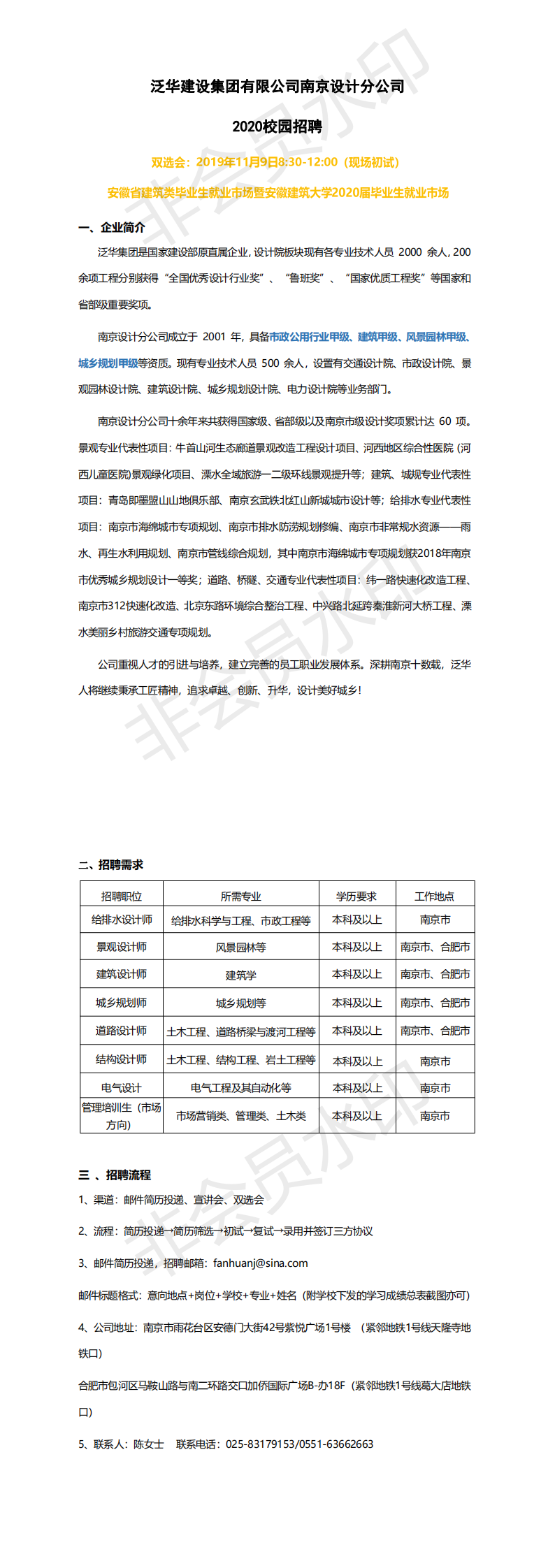 2020招聘信息:泛华建设集团有限公司南京设计分公司2020校招