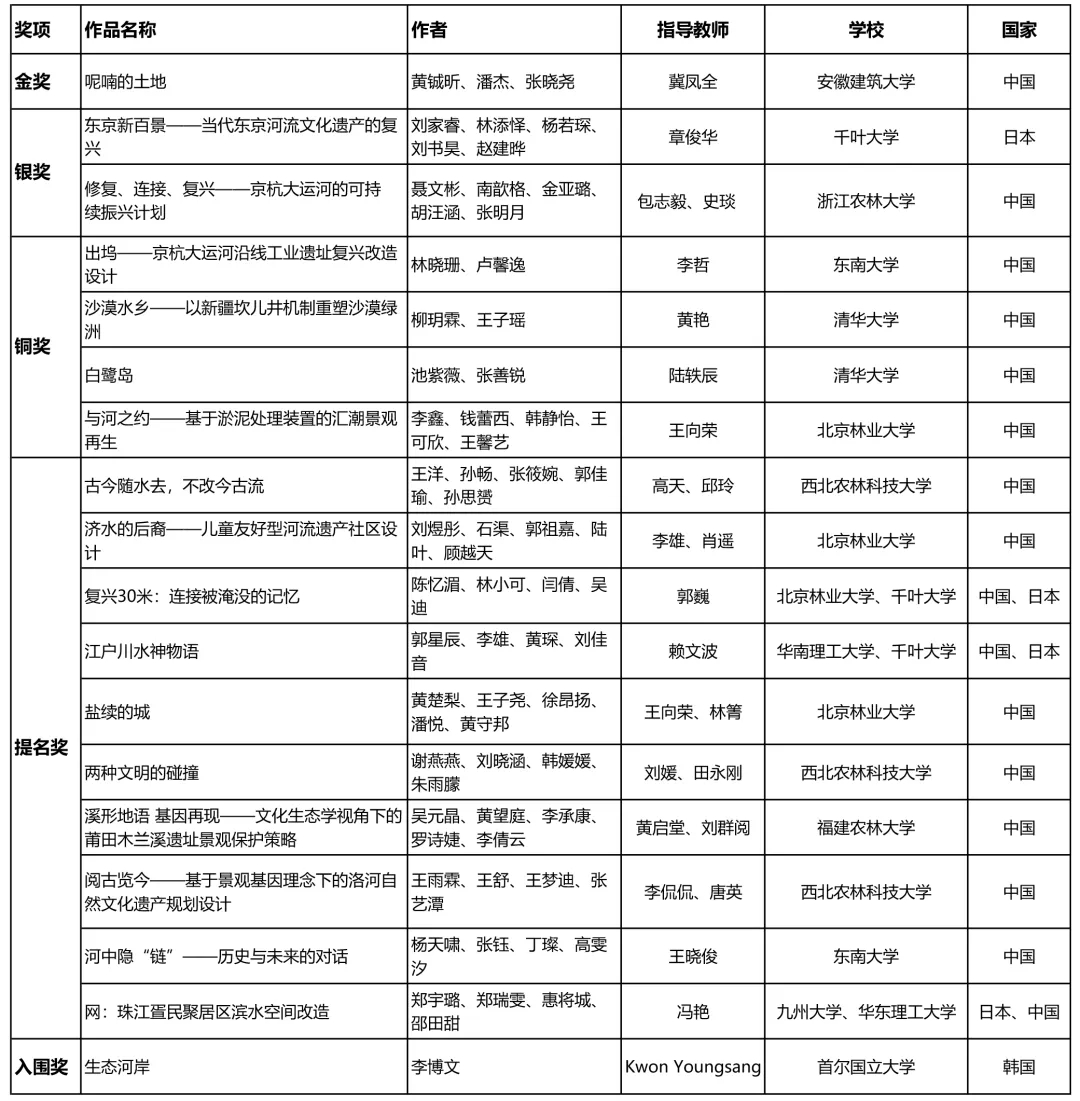 中日韩大学生设计竞赛两年一届,是业内认可度很高的风景园林学科设计竞赛。本届竞赛主题为“生活在遗产之中——城市河流自然与文化的风景价值”,由中国风景园林学会(CHSLA)、日本造园学会(JILA)、韩国造景学会(KILA)共同主办。本次竞赛吸引了来自清华大学、北京林业大学、千叶大学、首尔国立大学等中、日、韩三国知名高校师生的参与,终审评审委员会由中、日、韩三国知名专家学者组成。