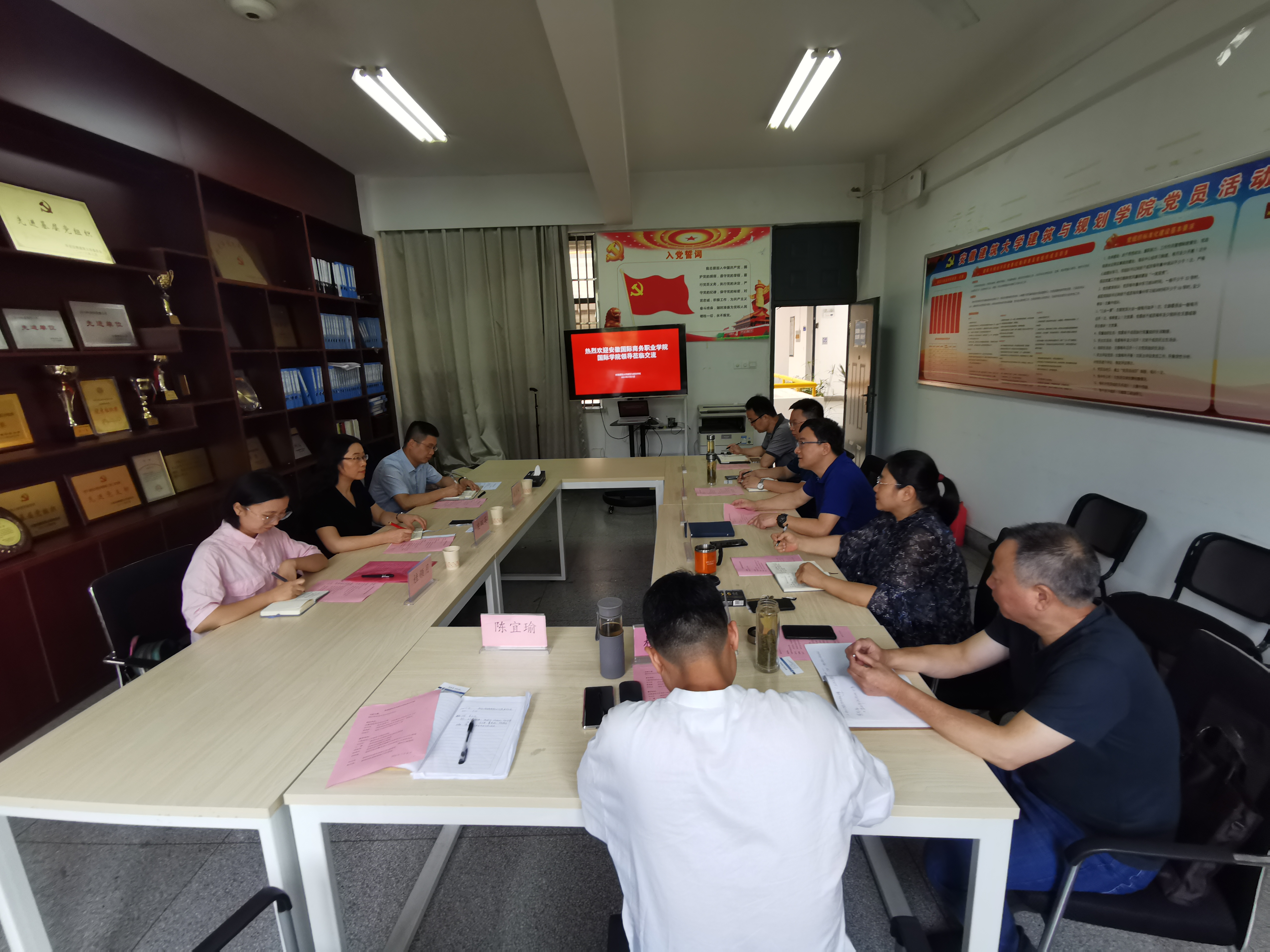 本网讯  721日,安徽国际商务职业学院校党委委员、国际教育学院党总支书记凌双英一行人,到建规学院洽谈援外培训工作合作交流事宜,学院党委副书记、院长吴运法,副院长王薇、顾康康及相关教师与来宾进行座谈。
