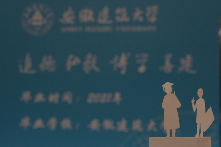 2022届建规学院毕业礼物是“印花暗号”模型摆件。从北区报到、皖南写生、60里毅行、模型搭建、实体建造、乔迁校区、疫情防控、专业学习、电脑绘图、毕业离校,用钢笔线条勾勒出属于建规的独家记忆。旋转的片墙映射求学生涯不断进步的阶梯,永恒的印记是徽匠永远不变的初心,建筑的剪影留下大学的足迹,徽派的花窗是过去、现在、未来跨越时空的情怀,蓝黄的配色是建大蓝遇到工科黄的浪漫,随着绘图纸的泛黄、马克笔的褪色、双面胶的失效,逐渐在记忆中淡去,每一个成长的印记,都献给最好的自己,以梦为马,不负韶华。