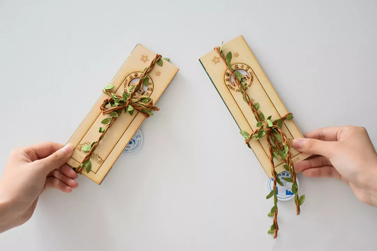 2021届风景园林专业毕业礼物是“归于林下”纸雕。采用代表进德、弘毅、博学、善建校训的不同颜色的信封,点缀着自刻橡皮章寄语、模型经典材料干花和特殊的火漆章封印。一张2017-2021年剪影、一张初入校园到学有所成剪影、一张北区大门与建筑馆的剪影、一张寓意在党的百年光辉下成长的66位毕业生剪影,根据使用指南,每位同学可以自行DIY制作纸雕。珍惜每一分与你们同行的时光,诸事皆宜,未来可期。