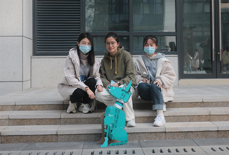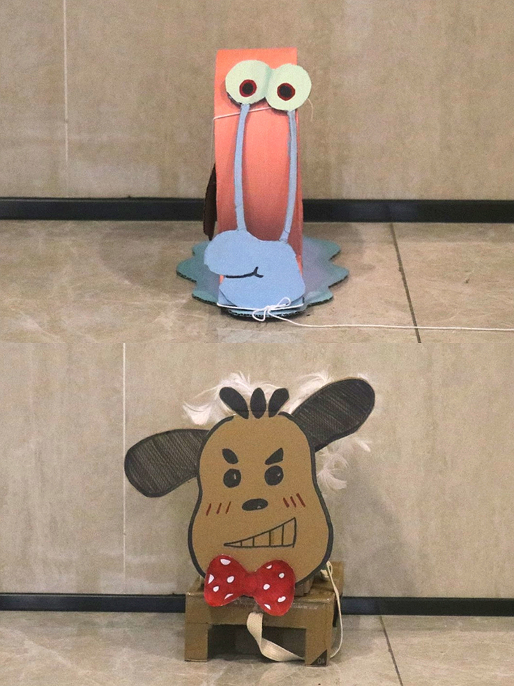 和植下一棵树相比,更简单的是节约每一张纸。同学们利用废旧纸板、废旧盒子等物品,通过剪裁、粘合、装饰多重工序,制作出各种栩栩如生的“纸板宠物”。同学们还为每只“宠物”量身定制了海报,既美观又充分展现出每只“宠物”独一无二的创意。在同学们制作完成后,大家将“宠物们”聚在一起举行了一场“宠物秀”,展现出大学生积极向上的精神状态与蓬勃朝气。