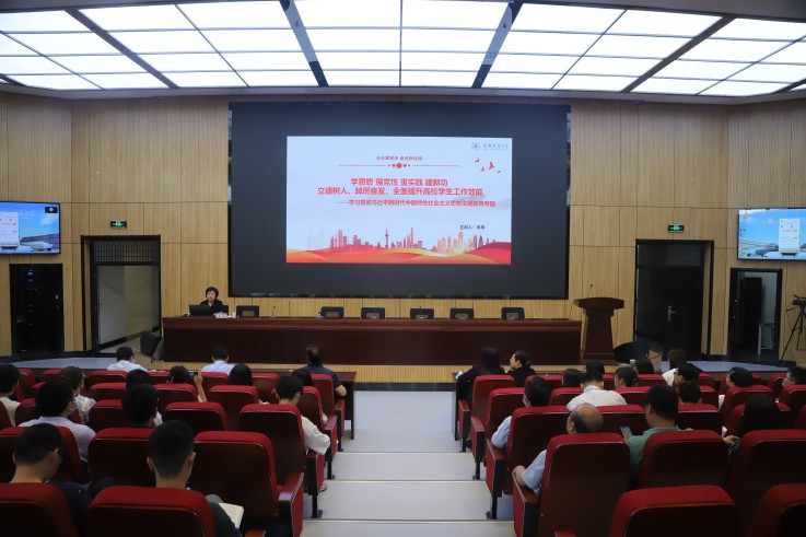 本网讯 为深入推进学习贯彻习近平新时代中国特色社会主义思想主题教育走深走实,按照学校党委主题教育工作安排,5月25日上午,校党委常委、副校长李早在实训综合楼二楼报告厅以《立德树人、踔厉奋发,全面提升高校学生工作效能》为题,讲授主题教育专题党课。校宣传部、统战部、研工部、学生处、工会、团委、建规学院、艺术学院相关负责人,教师党员代表,学生党员代表参会。