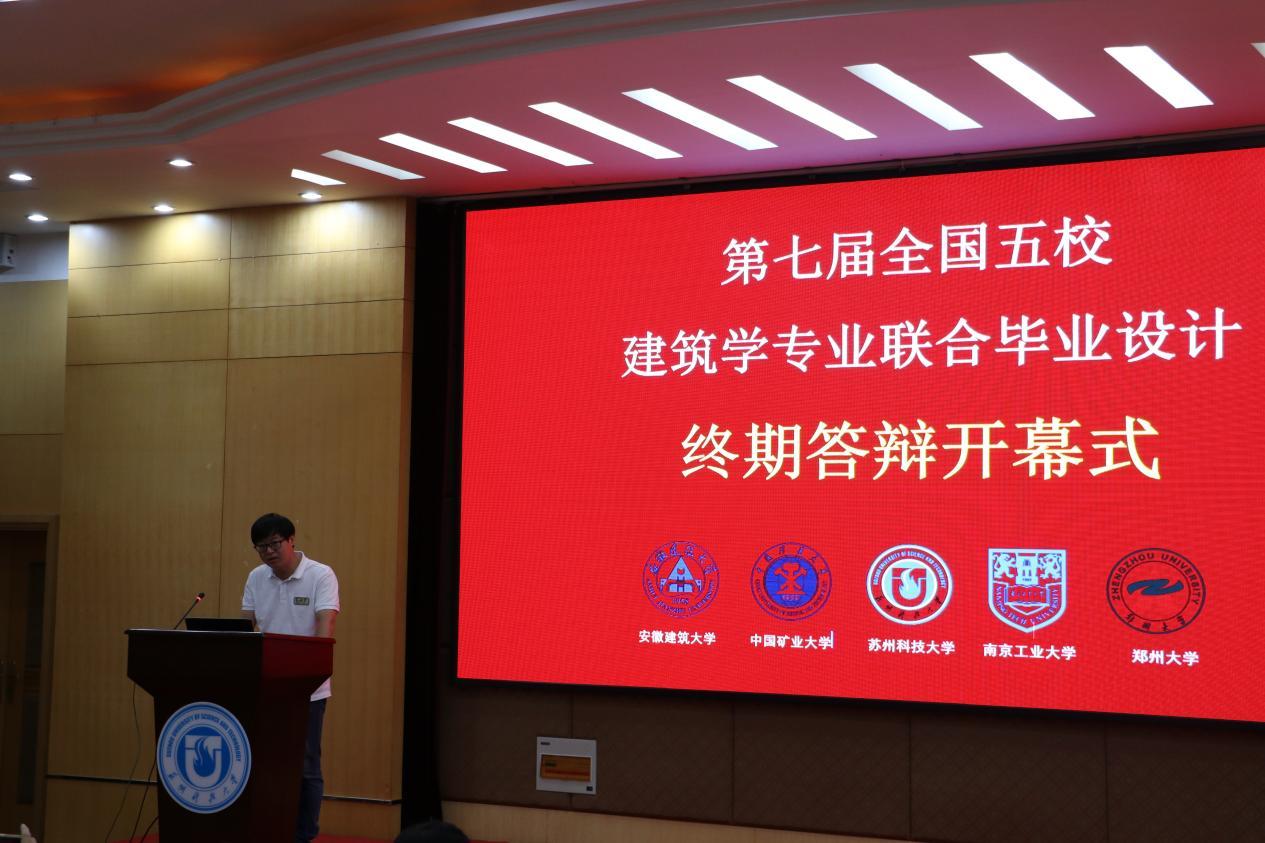 终期答辩前,进行了开幕式的致辞,开幕式由苏科大建筑与城市规划学院副院长罗超主持,主持人对各校师生和专家的到来表达热烈的欢迎,随后便由苏科大教务处孙云飞副处长对各校师生送好美好的祝福,祝愿大家都能取得良好的成绩,随后便是苏科大王勇教授对本次联合毕设选题的肯定,并且表示承办本次终期毕设的准备工作充足。最后中矿大建筑与设计学院副院长孙良教授代表指导教师做最后致辞,幽默的表示联合毕设进入七年之痒的阶段,不仅希望各位能够一起通过这个阶段,并且能够将联合毕设越做越大,吸引更多的学校参加。