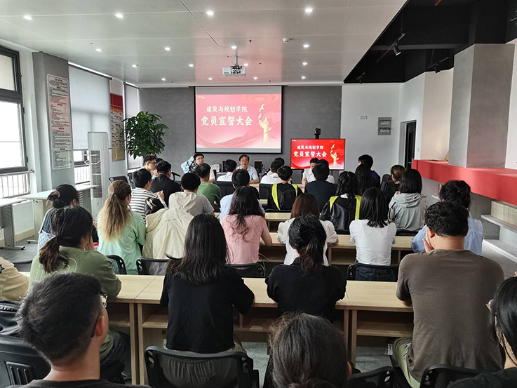 本网讯 6月16日,建规学院在实训综合楼举行2023年党员宣誓大会,全体预备党员及正式党员代表参加宣誓。学院党委副书记吴梦东主持宣誓大会。