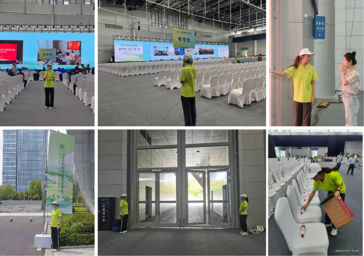在主会场组的志愿者提前熟悉会议场地,落实主会场组工作要求,在会议期间全程在岗,为嘉宾提供问询服务。主会场组的志愿者吃苦耐劳、无微不至,提前熟悉了滨湖会展中心会场嘉宾座位分布情况及周边各项服务设施位置,热情做好嘉宾指引工作。