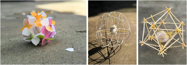 课题的核心挑战是设计一款装置,确保一只生鸡蛋从三层楼高度坠落后依然完好无损。学生们从最初的草图设计,到模型的成型,再到经过老师细致的点评和不断的模型完善与修改,最终形成了用于实验的模型。在设计过程中,学生对缓冲装置的特性有了更深入的认识,并探索了各种材料,以确保装置既能保护鸡蛋,又具有美观性。巧妙地运用了筷子、泡沫、瓦楞纸板、橡胶皮筋、绳子、木板等多种材料,设计作品形态各异、创意十足。