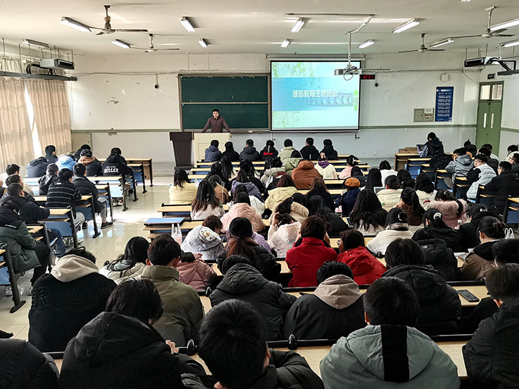 针对即将进行的期初补考,辅导员们开展考试诚信教育,强调严格遵守考试纪律,确保考试公平、公正、有序;针对提升学生电信网络诈骗防范意识,辅导员提醒同学们对涉及金钱的交易保持高度警惕,切实保障财产安全;针对低年级有转专业需求的同学,辅导员带领同学们学习转专业相关文件,提供指导。