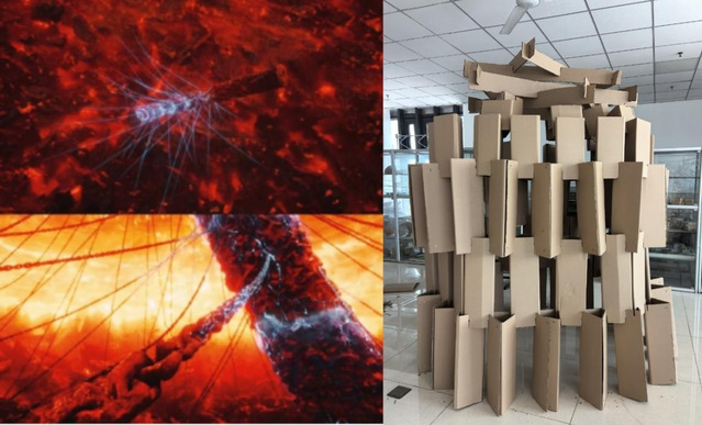 本网讯 近日,建筑与规划学院本科生课程“建筑初步2”的课题——“建造实验”圆满结课,并举行了精彩的成果展示。本次实验以《哪吒2——魔童闹海》为灵感源泉,引导学生从影片中提取设计原型,结合构成知识,抽象出相关元素,巧妙利用瓦楞板的特性,成功构建了一系列独具匠心的空间实体模型。