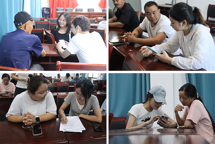 “农户问卷”旨在收集农户层面的基本信息和乡村振兴战略实施对农户生产生活的影响。团队践行“密切联系群众”调研方法,分赴王滩村、王圩村、安城村开展入户调研与问卷填写工作。调研中,村民纷纷表示,近年来生活幸福度大幅提升,他们真切地体会到了党和国家对他们的关怀与帮助。