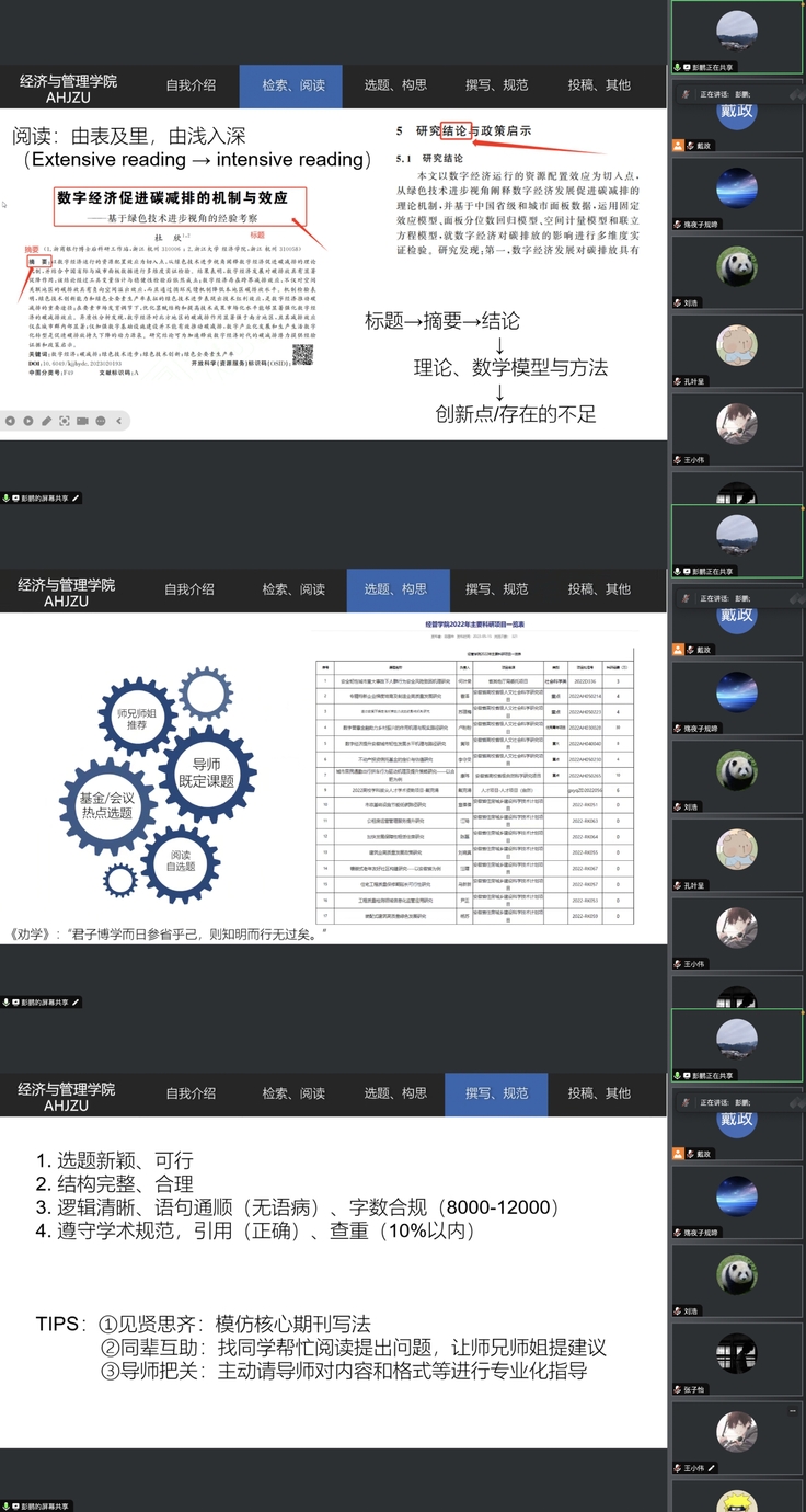 熠熠相承,星光共举。近日,研工部在线上开展2024年第2期国奖经验交流分享会。本期讲座邀请了我校经济与管理学院两位获得国家奖学金的研究生分享国奖经验。