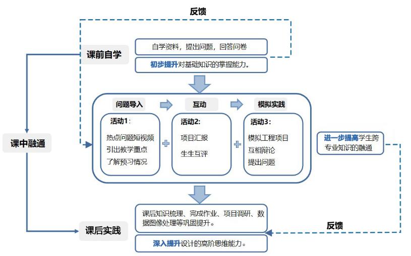 基于学校大土建学科专业齐全优势,围绕专业知识、能力、素质教育,培养学生综合性高阶设计思维,坚持“新文科”建设为指导,学生为中心,以科研结果为导向,固守本专业基本理论,跨专业知识横向融通,交叉融合重构教学内容,从而引入“学科前沿”和“工程项目实际”案例,进而增加课程内容的实践性设计;教学资源的多元立体化构筑,以本专业知识纵向深入为视角,通过线上线下结合、实践项目实施与课堂仿真实验相结合,提高学生对内容的掌握能力;三是合理运用现代技术手段,以进行跨专业知识横向融通为视角,组建“学习综合圈”,带动深度思考;修“自学、融通、实践”的学习方法,提升综合性高阶思维能力;四是设置过程性评价和终结性评价结合评价体系,注重评价的维度、深度和广度,提高学习动力和热情;五是以社会热点问题深挖课程思政元素,不断更新思政内容,坚持课堂教学、平台实践及项目实践“三课堂”联动育人,激发学习热情。