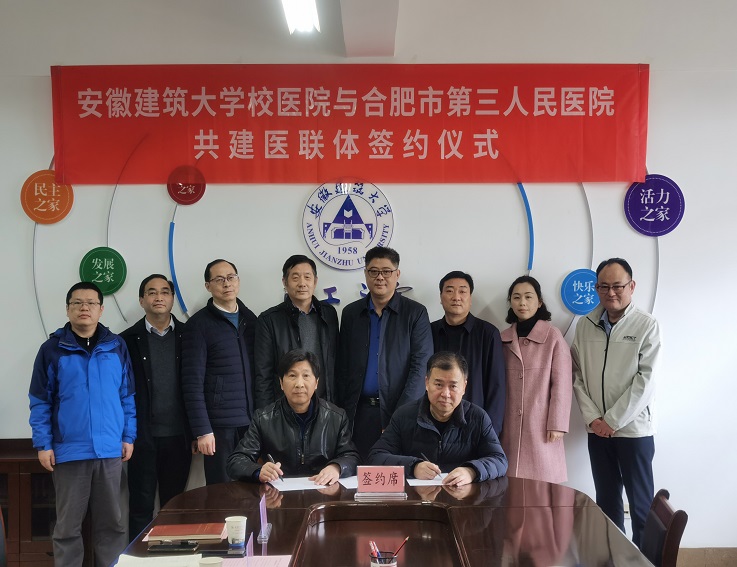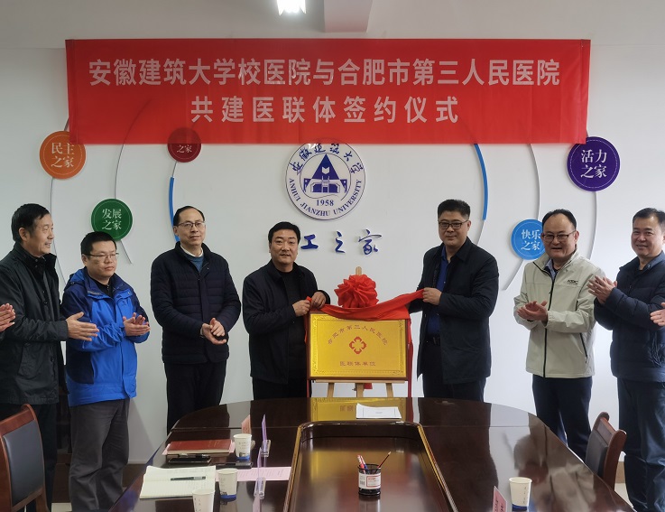 在医联体签约授牌仪式上,学校校医院与合肥市第三人民医院签订共建医联体协议,并就为我校师生开通“绿色通道”、提供专业医疗救助等方面达成共识。