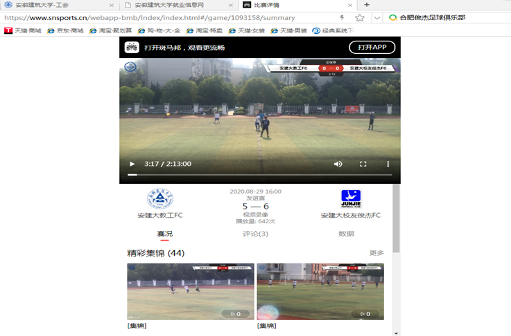 本网讯 8月29日,学校教工足球协会与学校唯一一支校友足球俱乐部——合肥俊杰足球俱乐部友谊赛在北区足球场举行。本次活动由校工会主办,得到校友工作处、就业工作处、后勤集团、保卫处、体育教学部等职能部门和教学单位的大力支持。