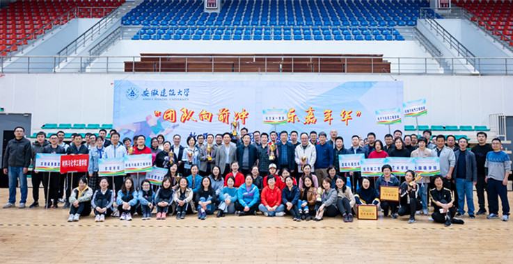 本网讯 在春暖花开、万物始新的季节,我校首届“团队向前冲 欢乐嘉年华”教职工校园拓展运动会在南校区体育馆隆重开幕。3月31日,来自全校15个分工会的近300名教职工参加了比赛。校长孙道胜为获得一等奖的单位颁奖,并与各参赛单位合影留念。