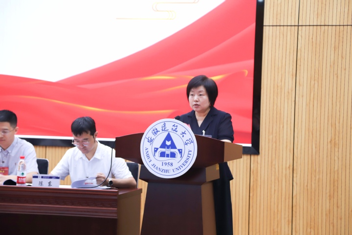王媛在闭幕式上致词,代表学院党委行政向辛勤工作在教学、科研、管理、服务各岗位上的同志们表示衷心的感谢。希望通过本次教代会,各位教职工代表要坚持旗帜鲜明讲政治,争做听党话、跟党走的先锋队。要坚持围绕中心顾大局,争做有担当、有作为的带头人;要坚持遵规守纪树形象,争做扬正气、树新风的引领者。希望全体教职工都能不遗余力地支持学校、学院发展,不断增强主人翁意识,在新征程上踔厉奋发、勇毅前行,为加快建成国内一流、特色鲜明的高水平建筑大学再立新功!(文/图:范瑾 宋宝萍 王姗姗 蒋芮;审核:王媛)