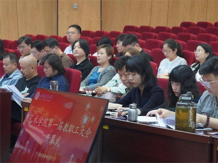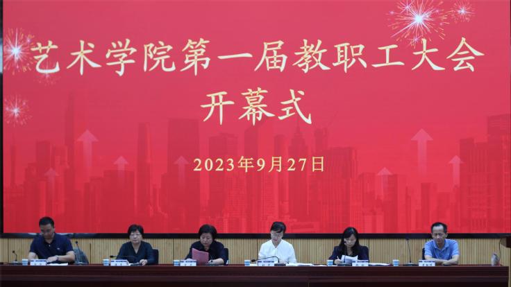 本网讯 9月27日,艺术学院召开第一届教职工大会,校党委常委、副校长李早,校工会主席胡雯应邀出席大会,54名学院教职工参加大会。