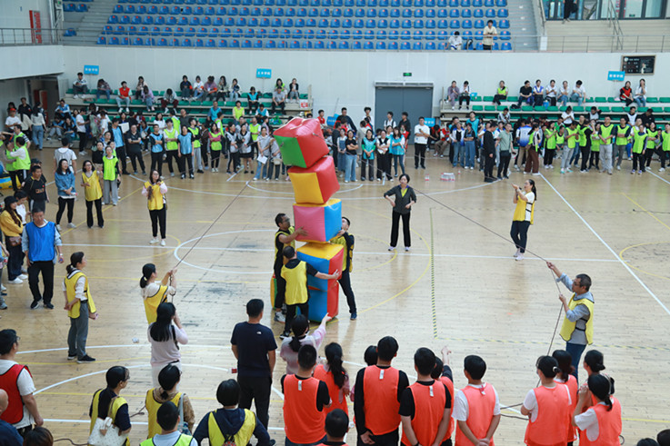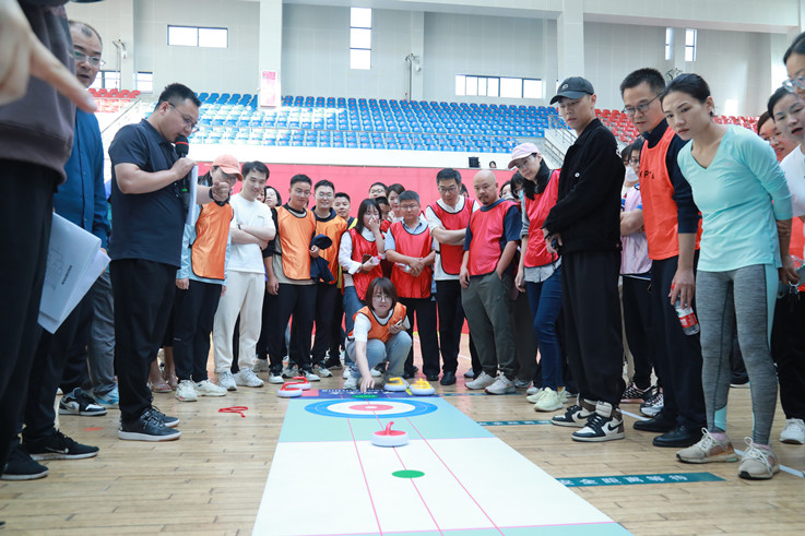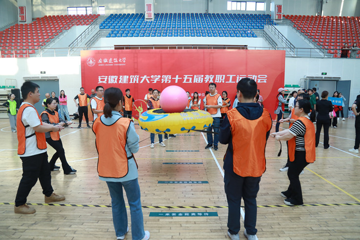 本次运动会共设置6个比赛项目,分别是“旱地冰壶、手脚并用”、“节节攀升”、“众星捧月、碰碰球大战”和通俗桥脾。比赛开始,各参赛队研究战术,充分发挥团队作用,参赛队员们齐心协力、全力以赴,现场观众跃跃欲试、情绪高涨,为场上队员热情呐喊、加油助威,场面热火朝天,欢声笑语连成一片。经过激烈的角逐,获团体总分前八名的分别为土木学院、材化学院、机关一党委、环能学院、后勤集团、机关第二党委、电信学院、艺术学院。土木学院、机关第一党委、后勤集团获得优秀组织奖。