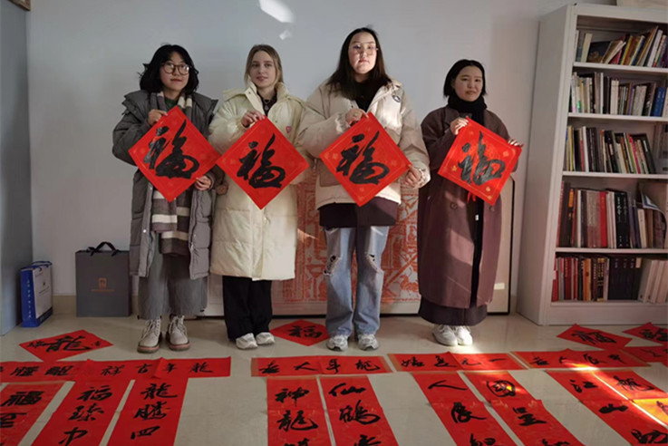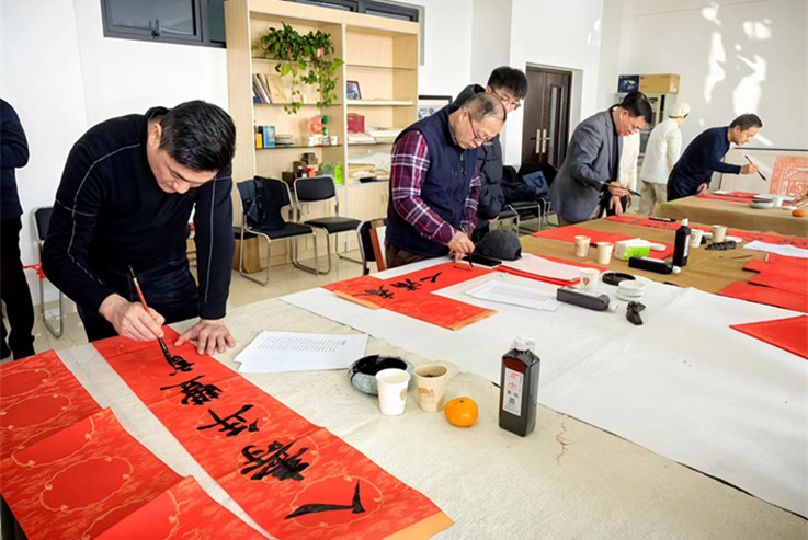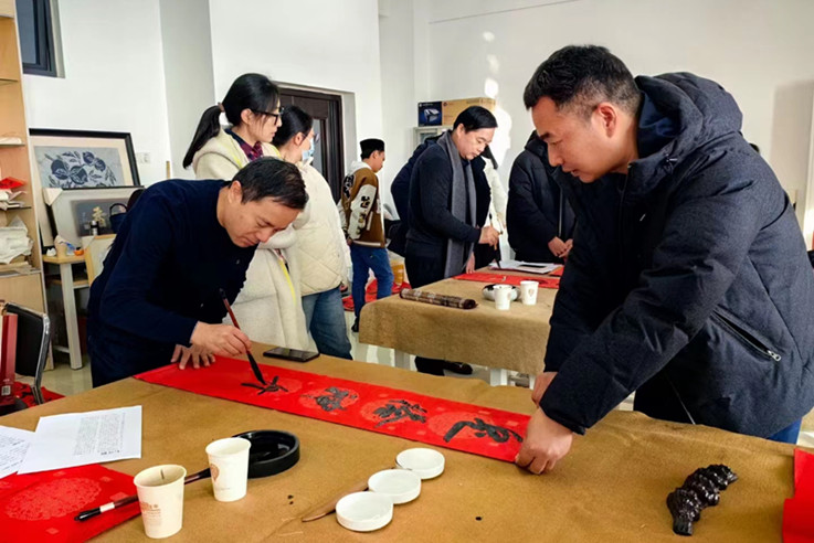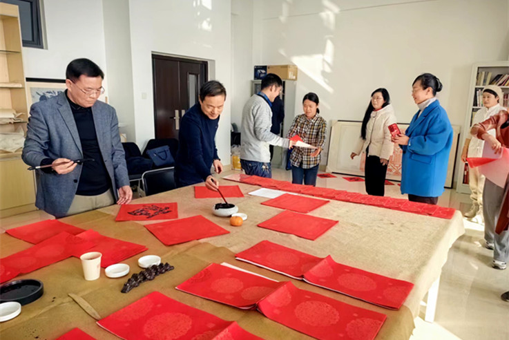 本网讯 喜迎甲辰,笔写华章。为营造欢乐祥和的节日氛围,丰富师生的精神文化生活,推动中华优秀传统文化进校园,校工会联合艺术学院、安徽文艺评论创作基地暨文艺志愿服务点共同举办“安徽书法名家送文化进校园——送春联迎新年”活动,邀请安徽省书法家协会副主席石海松、陈智、秘书长程多林,中国民协理事、安徽省民间文艺家协会副主席刘晓明、秘书长史培刚,安徽省青年书协副秘书长张勇等艺术名家为师生书写春联,送上新年祝福。