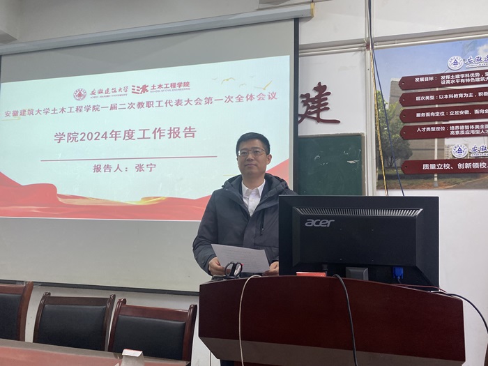 院长张宁作学院2024年度工作报告。报告涵盖党建工作和发展工作两部分,党建工作方面包括强化理论武装,坚定理想信念;守牢阵地防线,做好舆论宣传;坚持对标对表,推进党建“双创”;坚持严的基调,高质量完成党员发展工作;夯实责任,推动全面从严治党向纵深发展;紧盯巡察巡视反馈,做好整改“必答题”等。发展工作方面则涉及打造优势专业,教育教学成果再创新高;聚焦教育改革,研究生培养水平持续提升;加强内涵建设,科研水平显著提高;内培外引,师资队伍不断壮大;五育并举展风采,群团工作再上新台阶等内容。报告全面回顾了学院2024年的工作成效,并对学院未来工作进行了展望。