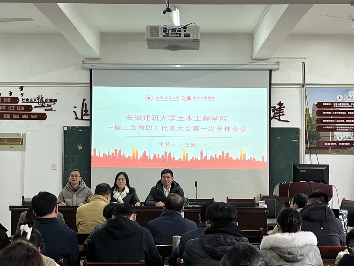 本网讯 1月9日下午,土木工程学院一届二次教职工代表大会在徽匠楼 2306 会议室隆重召开,学院领导、全体正式代表以及列席代表齐聚一堂。会议由学院党委书记王媛主持。