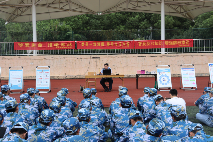 本网讯  为了提高学生们的防范意识,针对近期泛滥成灾的电信诈骗现象,2020年9月23日,在南校区风雨操场,我校保卫处邀请公安局的专家同志为2020级新生开展了防诈骗安全宣传讲座。