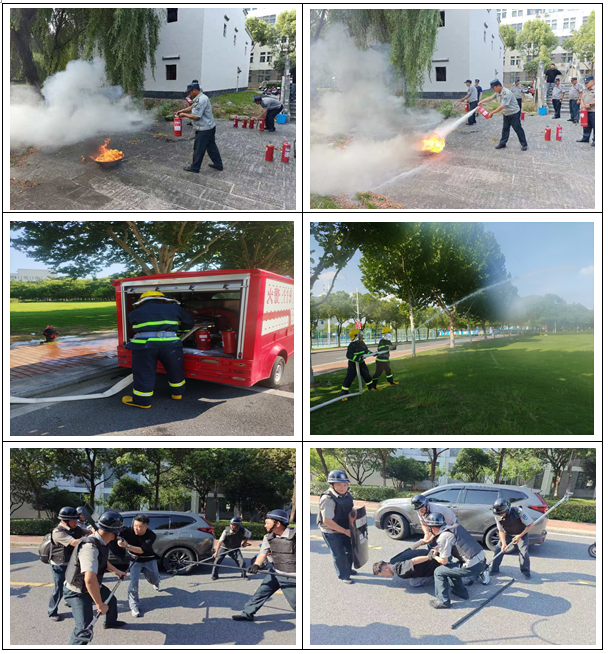 针对当前消防安全和应急处突的重点工作,保卫处首先对灭火器使用、防暴器械操作以及假期学校应急处突进行了系统的理论知识培训。随后,各岗位队员接受了灭火器以及消防水栓使用的实操培训,确保他们在实际操作中能够熟练掌握这些技能。在防暴应急处置实操环节,还组织了防暴、车辆闯卡等应急处突演练工作,检验和提升安保人员的应急处置能力。