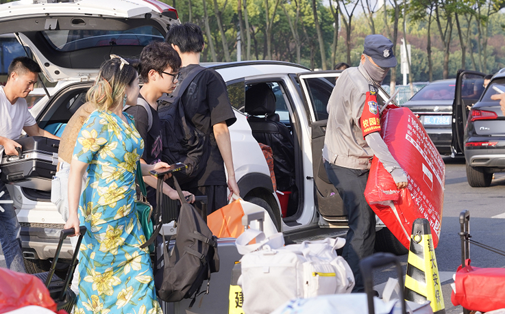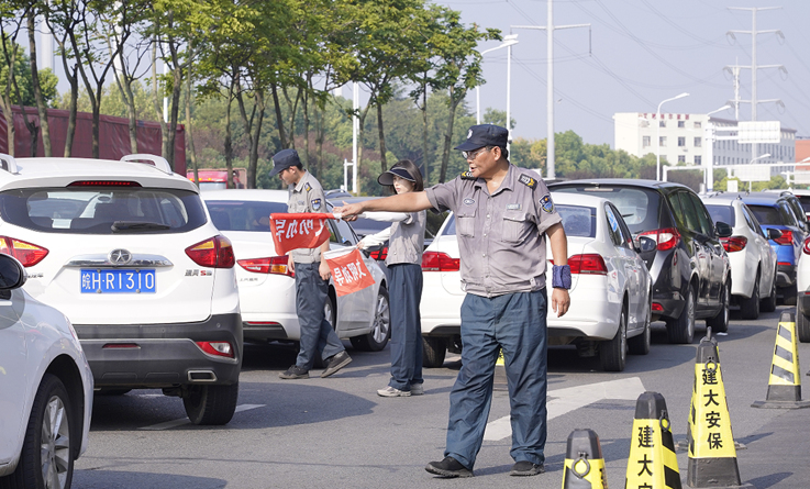为确保新生入学校园周边交通的畅通与安全,保卫处与属地交警部门开学前多次预演,共同商量针对校园周边的交通疏导方案,并在现场关键路段设置临时交通指示标志,确保学生和家长的安全出行,及时疏导交通堵塞,保证交通秩序井然。
