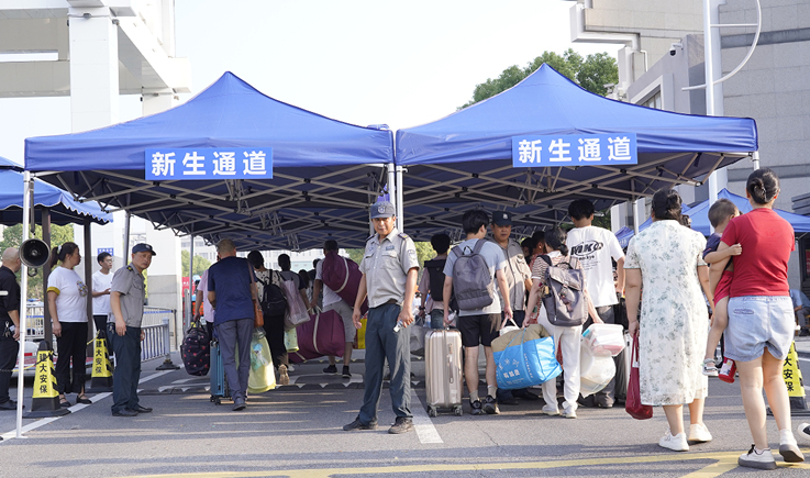 为迎接新生的到来,保卫处全面加强校园及周边的安全保障巡逻,工作人员每天轮班进行全方位巡逻,重点关注校园出入口、宿舍楼、教学楼等易发安全问题的地点,提前搭好新生双排进出通道,保障学生出入顺畅,为新生入学做好充分准备。