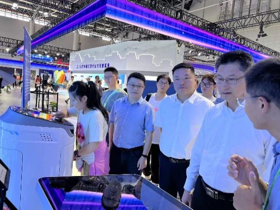 本网讯 9月22日,校党委书记马文革赴世界制造业大会,现场考察我校科技成果转化应用展区并参观展馆,校办公室、科技处、科技成果转化处负责人以及土木学院教师党支部、材化学院王平科研团队参加活动。