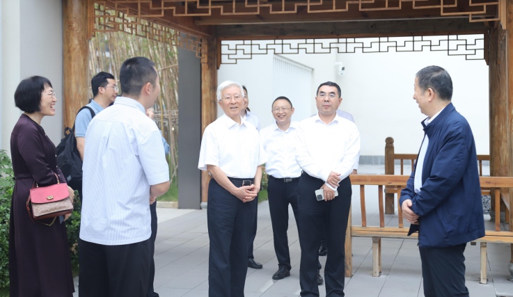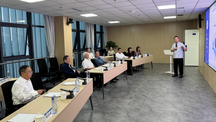 管培俊一行首先考察了教育部高等研究院融合发展创新研究中心基础设施建设情况,深入了解了创新研究中心的建设规划、人员配置与运行现状。在听取教育部高等研究院综合管理信息系统汇报时,管培俊对信息系统能够实现产学研协同攻关项目管理、研究生招生培养、技术需求对接和成果转化的全流程闭环管理给予了高度评价。他强调:“要持续完善数据集成与共享机制,强化信息安全保障,通过数据强化高等研究院建设模式、运行机制、质量监管、跟踪评价等理论方面的研究”。