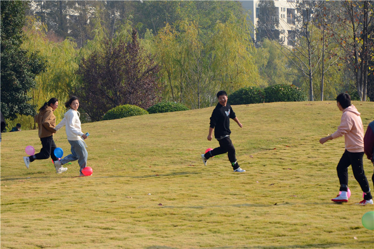 本次团辅活动分为四个环节,“飞花令”、“你画我猜”、“踩气球”和“人三足”。其中,观感上精彩的是“踩气球”游戏。一轮十个人,一男一女组成一组当游戏开始后,每组相互搭配,左右脚捆绑个气球,一边保护自已气球的同时,一边进攻踩爆其他组的气球。在其他活动中,大家也都沉浸在快乐的氛围中。游戏过程紧张而激烈各组同学齐心协力,力争上游,现场充满了欢声笑语