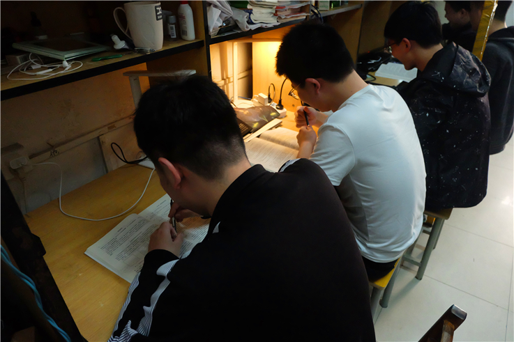 相对于一个人考研,与友一起为共同的目标奋斗,为“灰色”的考研生活增添了色彩。三点一线的生活、枯燥的考研复习,他们六人之间相互勉励共同进步相对紧张的复习环境下,大家难免会有些浮躁,但都会克制自己的小情绪,为宿舍创造一个温馨的氛围,不干扰别人
