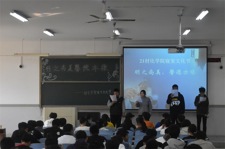 本网讯  为加强学生间的交流,丰富学生的课余生活。10月28日,材化学院东辅楼2203教室举办寝室文化节决赛。