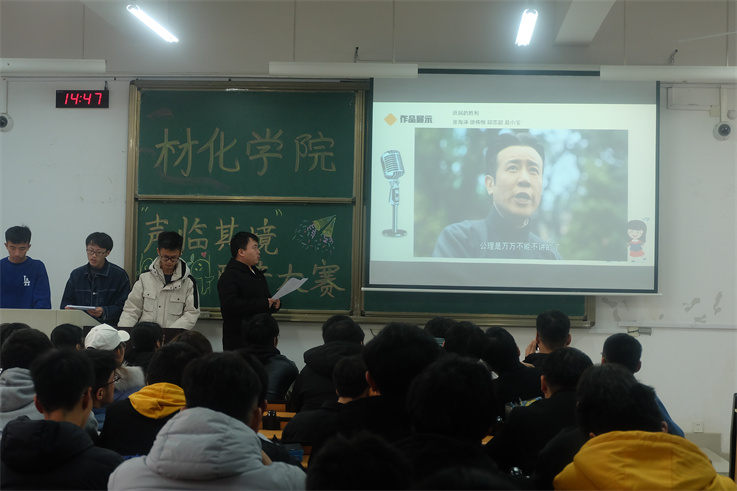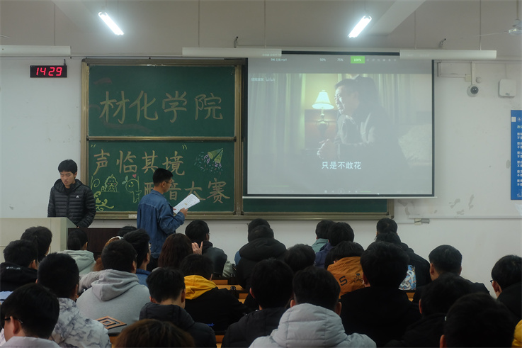 本网讯   为丰富学生课余生活,陶冶学生情操,鼓励学生积极参加课外活动,12月11日,材化学院于逸夫楼5119教室举办声临其境配音大赛。