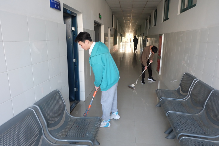 下午,同学们到达材化学院办公楼、实验室、仓库及逸夫楼旁边草坪后,立即投入到清扫的工作中。负责实验室的同学从第一排开始将桌面和地面打扫干净,把仪器放置整齐,大家分工协作,积极主动,热心投入。室外的同学打扫沿路的草坪,拾起台阶旁的纸屑,还建大一片纯粹的绿。打扫固然辛苦,但是能够为材化学子提供一个整洁明亮的学习环境,大家都很开心,将“学雷锋从我做起”,诠释得淋漓尽致。