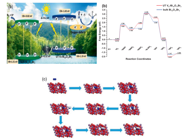 以研究生高凯悦为第一作者,在Journal of Colloid and Interface Science, 2022, 61412–23发表了题为《Oxygen vacancy engineering of novel ultrathin BiOBr nanosheets for boosting photocatalytic N reduction》的文章,研究了BiOBr超薄纳米片光催化还原氨气的性能,阐述了富氧空位和超薄形态在光催化氮还原反应过程中的重要作用。