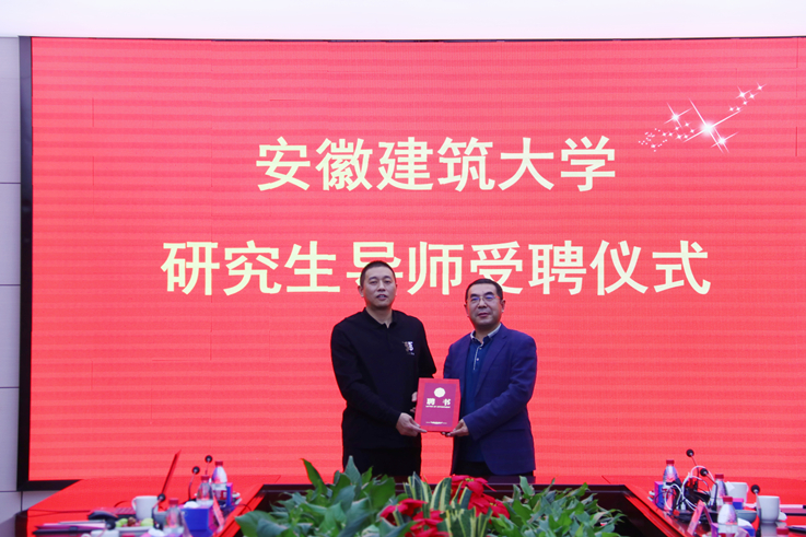 安徽建筑大学研究生院、发展规划处、材料与化学工程学院领导和安徽苏亚建设集团有限公司高管参加了研究生兼职导师受聘暨材料与化学工程学院研究生实践教学基地签约仪式(文图:王爱国;审稿:丁益)