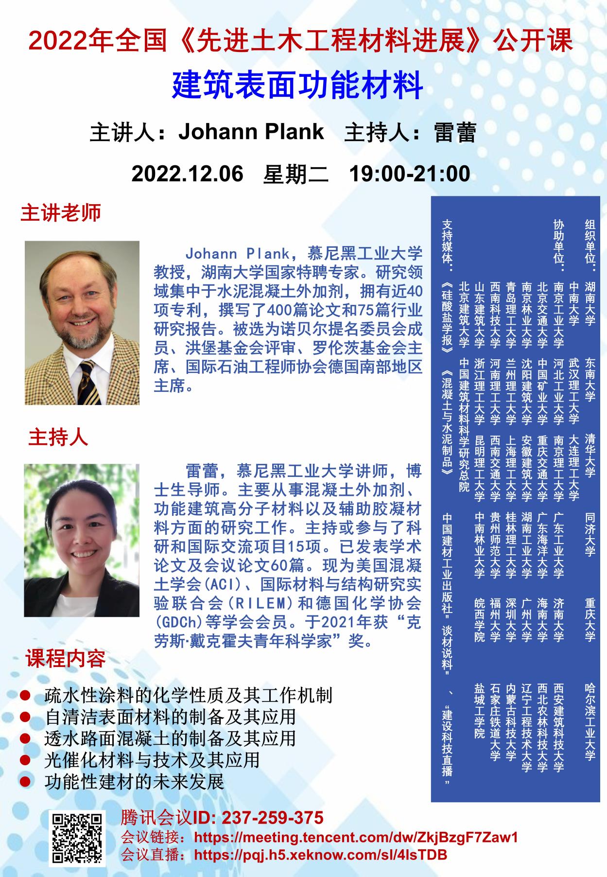 2022年全国《先进土木工程材料进展》公开课——建筑表面功能材料