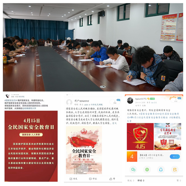 17日,学院“安全领航”宣讲团组织同学们在材化学院会议室进行国家安全知识竞答。此次竞答活动从总体国家安全观出发,覆盖了国家安全法、网络安全法等多个主题内容,现场氛围安静严肃,同学们凭借着自己的知识储备认真答题。此外,学院还组织学生开展反邪教警示教育进校园、参与话题互动、观摩国家网络安全视频特辑等系列活动,针对国家安全话题,同学们在互动评论区踊跃发表自己的感悟。