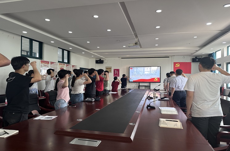 宣誓仪式在激昂高亢的《国际歌》中拉开帷幕。之后,何世明副书记宣读参加入党宣誓仪式的新党员名单和转正党员名单,并带领全体党员面对鲜艳的党旗,举起右手进行庄严的入党宣誓。