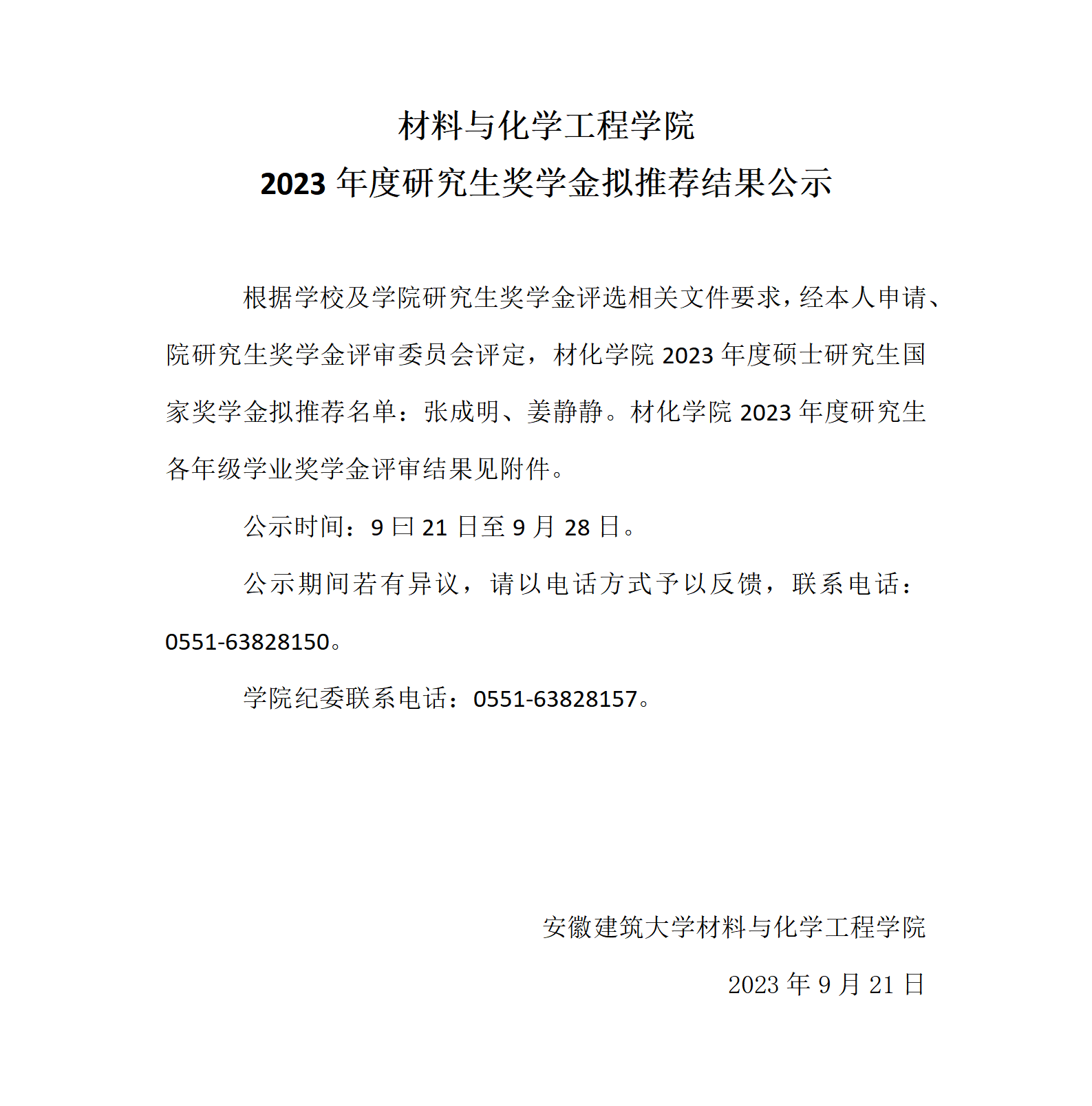 附件1 材化学院2023级博士研究生学业奖学金评选情况汇总表.xls附件2 材化学院2021级硕士研究生学业奖学金评选汇总表.xls附件3 材化学院2022级硕士研究生学业奖学金评选汇总表.xls附件4 材化学院2023级硕士研究生学业奖学金评选情况汇总表.xlsx