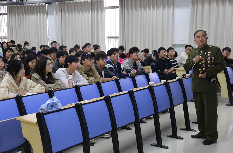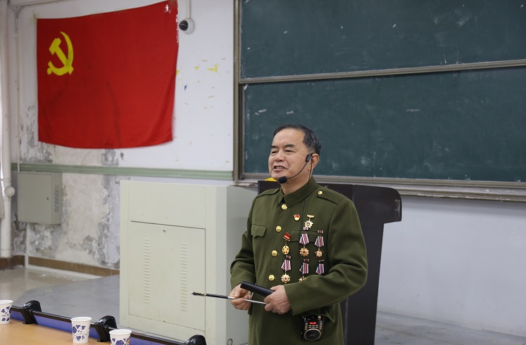 在讲到1979年战斗英雄许宝富参加南疆保卫战时,陈老为同学们展示了一张南疆战场的图片,并询问道:“同学们,你们知道在这张照片中,我们战士们的身后是什么吗?”有同学说,是我们伟大的祖国;有同学说,是中国共产党。陈老笑了笑说“你们讲得都对,在我看来,战士们的身后是亲人们声声叮嘱殷殷期盼,是后方人民群众万众一心精诚团结,是伟大祖国母亲坚实的臂膀和温暖的胸脯”。教室里安静了不一会儿,随后响起雷鸣般的掌声。