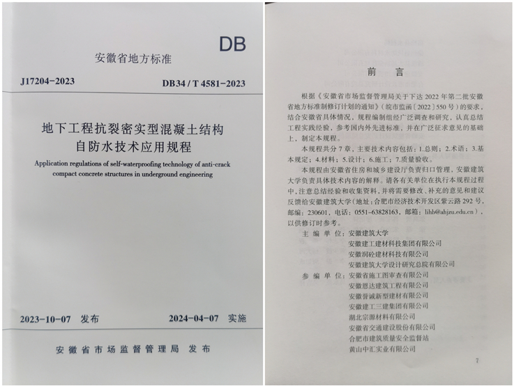 学校主编的安徽省地方标准《地下工程抗裂密实型混凝土结构自防水技术应用规程》正式发布