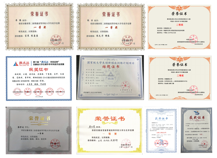 近年来,获安徽省教学成果奖3项,其中特等奖和一等奖各1项。获批教育部产学合作协同育人项目、安徽省重大教改项目、安徽省新型建筑材料现代产业学院等省部级教研项目20余项;承担国家自然科学基金、省部级科技项目20余项,获安徽省科技进步一等奖1项,二等奖1项,安徽省自然科学三等奖2项、环境保护科学技术一等奖1项。发表高水平学术论文100余篇,授权国家发明专利10余项,累计到账科研经费逾千万元。2023年化学学科进入ESI学科全球排名前1%。