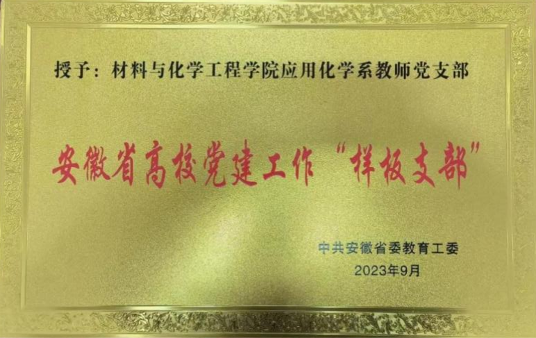 本专业已建成年龄与学缘结构合理、学术水平和教学水平高、科研能力强的师资队伍,专业教师具有博士学位占比94.7%,教授10人,副教授5人,高级职称占比78.9%。现有安徽省教学名师2人,安徽省“特支计划”创新领军人才1人,安徽省教育厅优青1人,1人入选全球前2%顶尖科学家榜单。获批省级“基础化学课程教学团队”和省级“115”产业创新团队。应用化学系教师党支部2023年获批安徽省高校党建工作“样板支部”,应用化学系2023年获批省级基层教学组织。