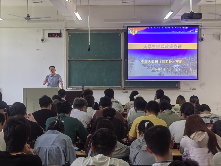 之后,王凯向同学们详细解读了大学生应征入伍需要满足的基本条件以及征兵优待政策。国家和地方政府在复学升学、退役安置、就业创业等方面推出多项优待措施,这些暖心的举措体现了全社会对军人的尊崇,也为从戎报国的大学生们提供了更多发展机遇和历练平台。