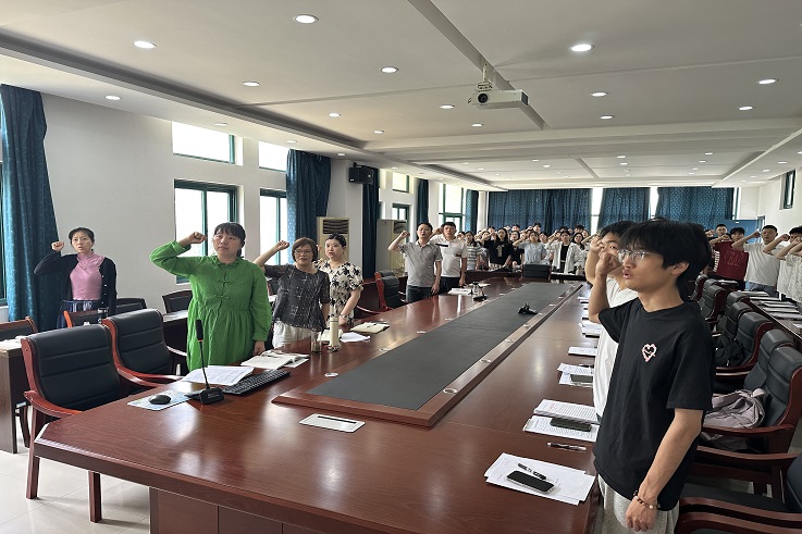 重温一次入党誓词,强化党员意识。在支部书记领誓下,毕业生党员们用饱满的热情、洪亮的声音,抒发对党忠诚的意志和信念,表达时刻不忘初心、矢志奋斗的坚定决心。党员们再次举起右手、握紧拳头,响亮的声音再次激荡内心,大家更加坚定了坚守初心砥砺奋进的决心。