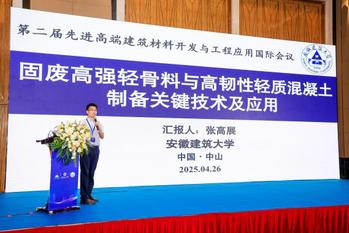 本网讯 2025年4月25日至4月27日,第二届先进高端建筑材料开发与工程应用在中山成功举办,会议由武汉理工大学主办,硅酸盐科学与先进建材全国重点实验室、澳门科技大学、东南大学、香港城市大学等单位承办,会议举办了“与顶级科学家对话”专场沙龙、主旨报告、专题论坛、青年学者论坛、学术成果与行业先进产品展等活动。武汉理工大学副校长、国家杰出青年基金项目获得者王发洲教授致开幕辞,中国工程院士、东南大学刘加平教授做了题为“超高性能水泥基材料研究与应用”的特邀主旨报告,中国工程院院士、暨南大学校长邢锋教授做了题为“滨海混凝土结构双重保障技术:ICCP-SS”的特邀主旨报告。 我院张高展教授受邀参加大会,担任“分会场二:低碳零碳新型建材”主持人并做了题为“固废高强轻骨料与高韧性轻质混凝土制备关键技术及应用”的邀请报告,详细介绍了利用煤矸石、磷石膏等固体废弃物制备高强轻骨料与轻质超高性能混凝土的关键技术、产业化生产情况及在实际工程中的应用效果。